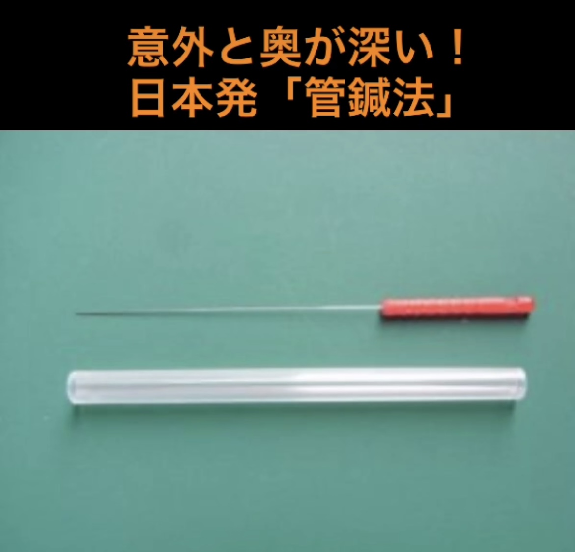 日本の鍼は管を使用して「トントン、スー」。可能となった極細(=痛みを起こしにくい)鍼の使用は5〜6cmといった長めの鍼で起こりがちな「たわみ」も抑えます。一般的に鍼は長くなるほど刺入の難しさと併せて"揺れ"による重みが痛みへと繋がり易く、そういった意味でも管鍼法が鍼灸施術に与えた影響は大きいのです。